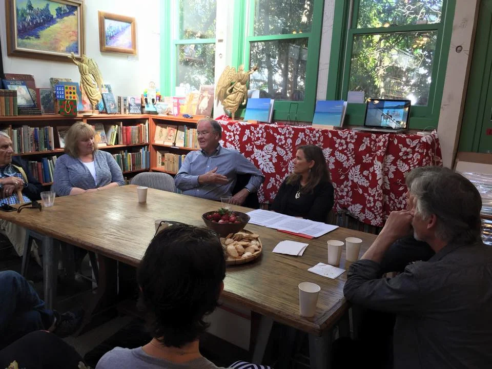 Book reading at Old Capital Books in Monterey, California. Special guest Congressman Sam Farr (center left) with author Sally-Christine Rodgers (center right) photo by Michael Sutton